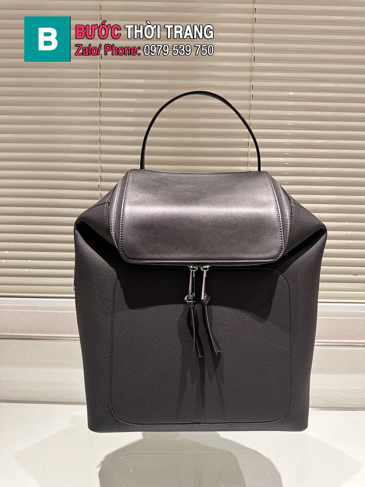 Ba lô LOEWE màu đen da bò size 38x34x15 cm thiết kế sang trọng năng động có ngăn rộng lớn