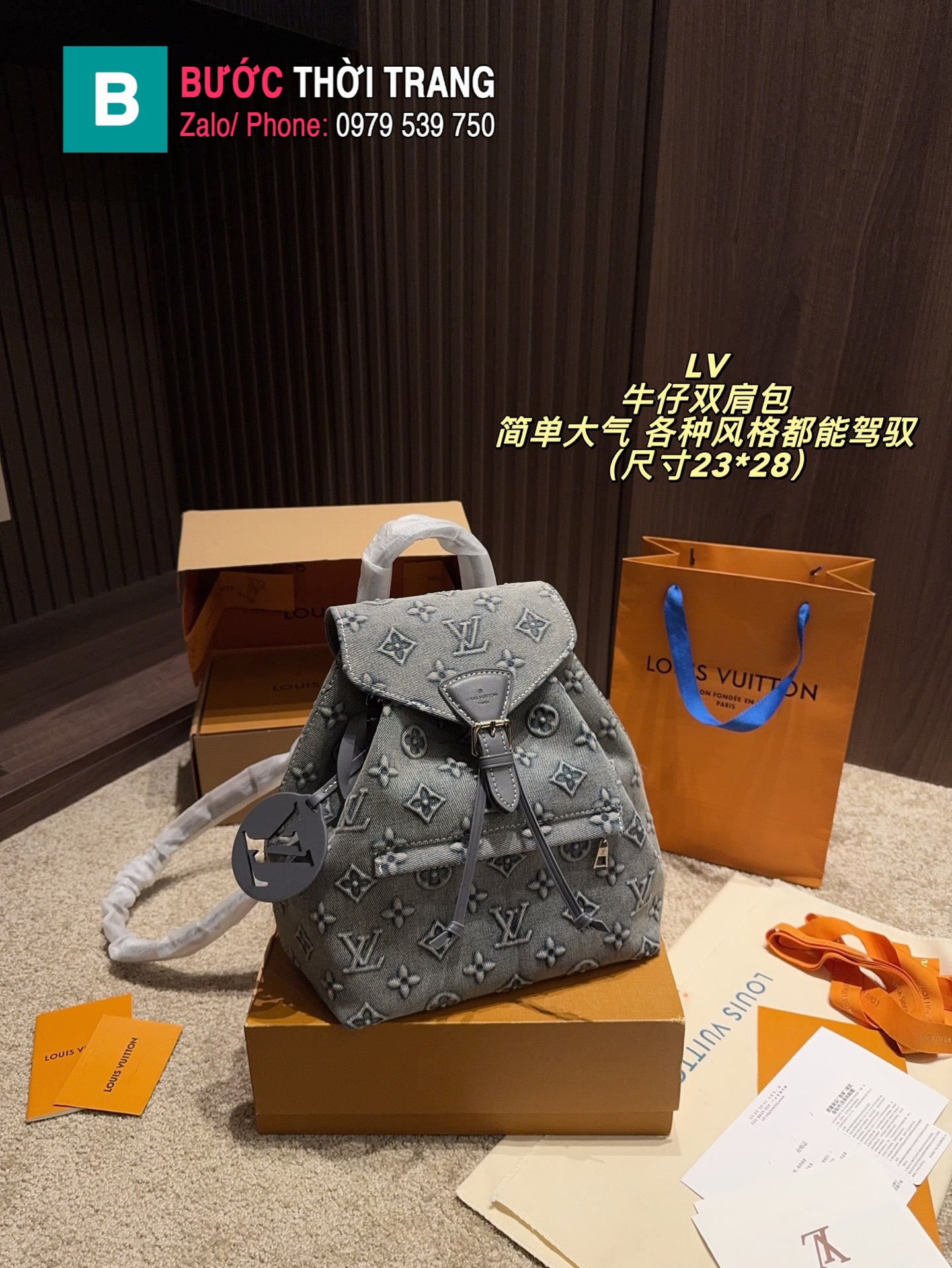Ba lô LV Denim màu ghi đen size 23×28 cm