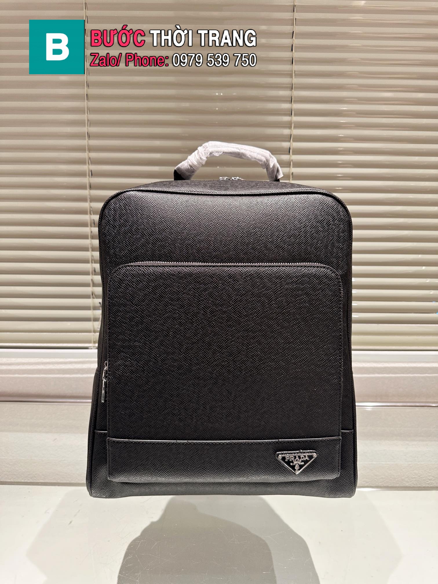Ba lô PRADA màu đen có ngăn rộng da xước bền bỉ size 29×38 cm