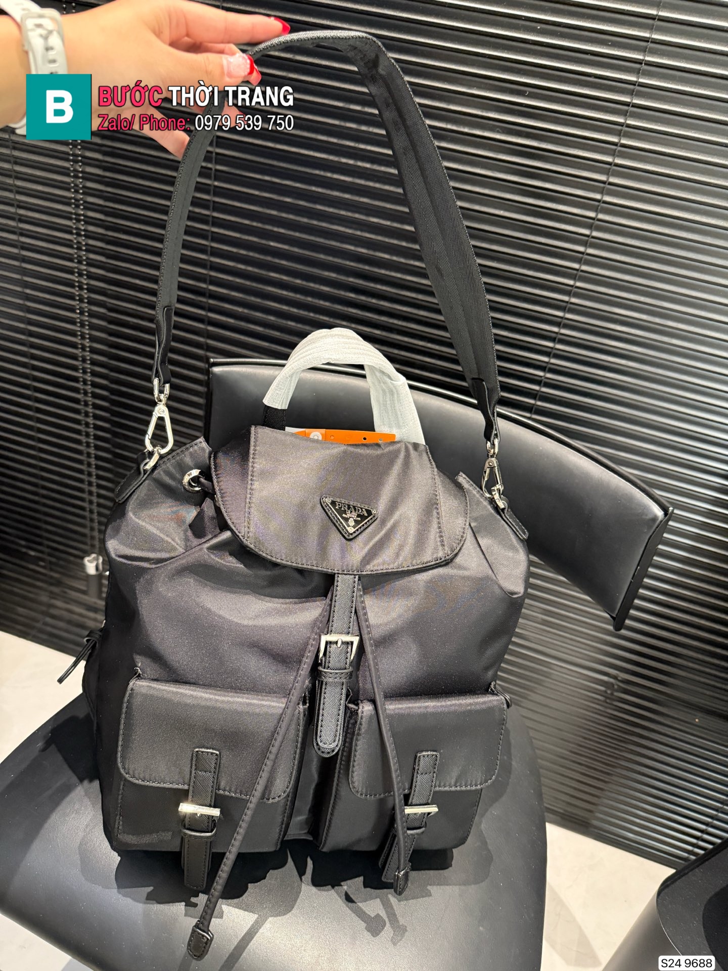Ba lô PRADA màu đen size 29×30 cm chất liệu vải dù nhập khẩu bền bỉ logo nổi bật