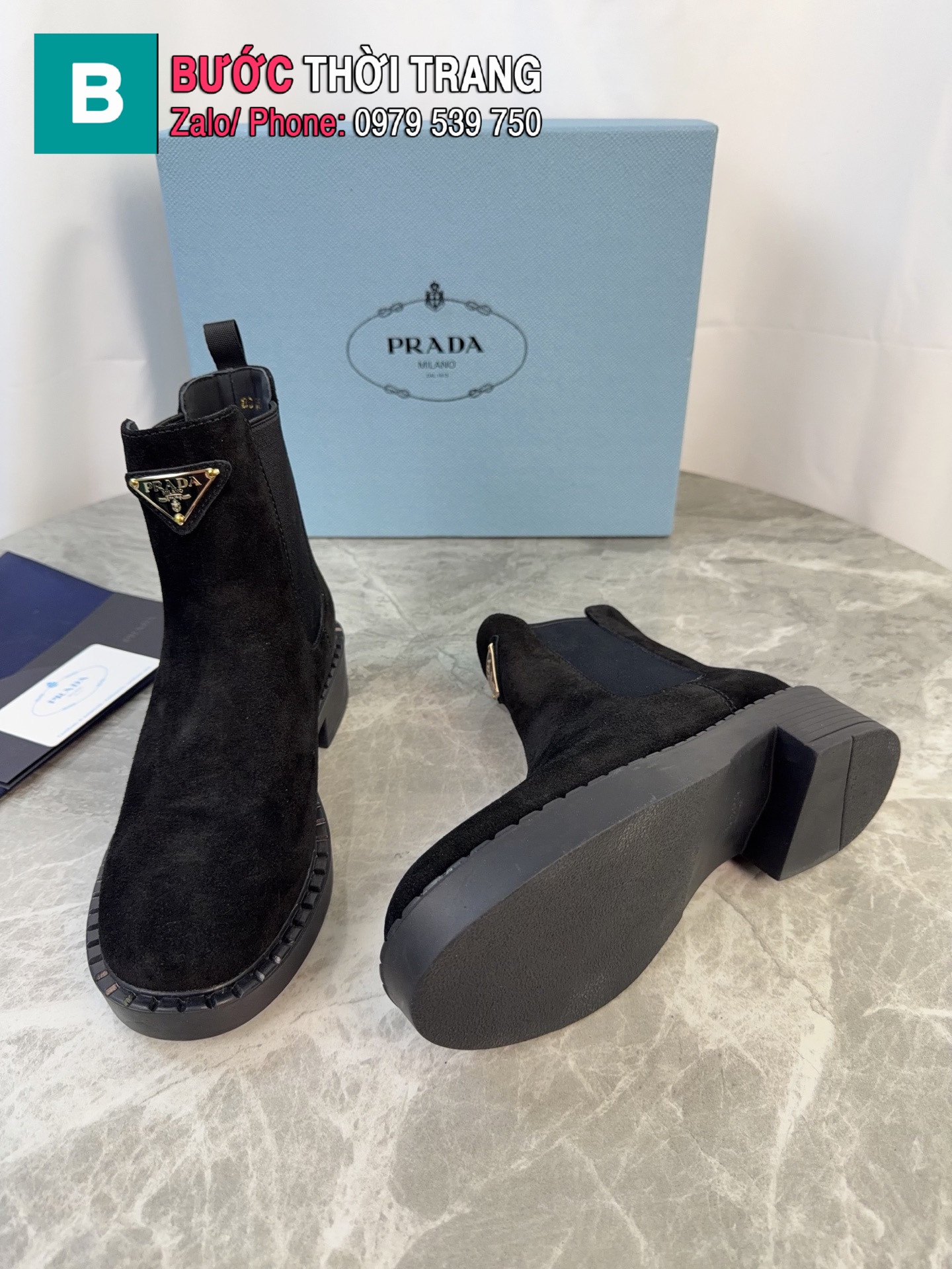 Boot da lộn PRADA cổ chun ngắn cao cấp màu đen sang trọng ấm áp