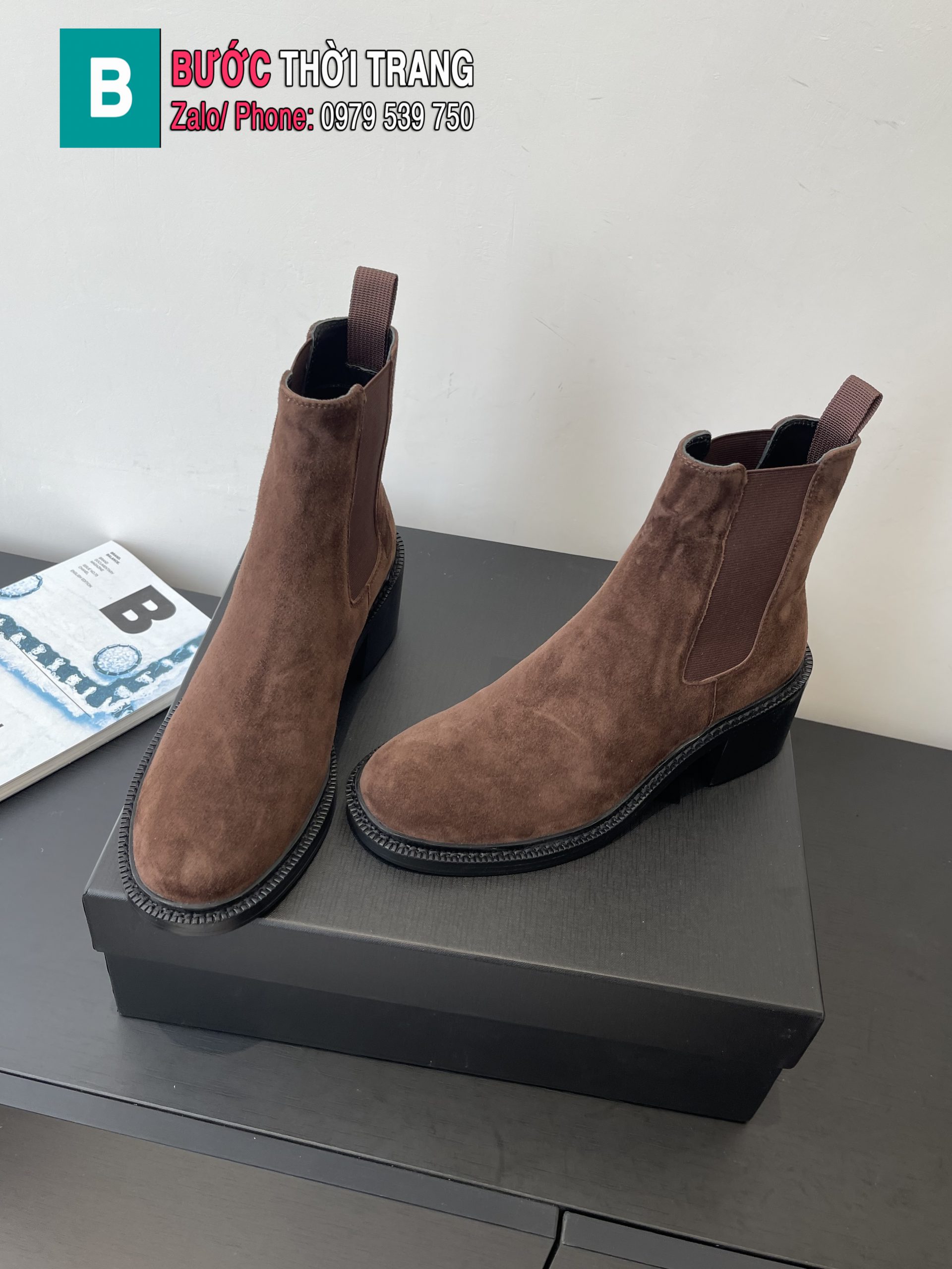 Boot YSL cao cấp màu nâu socola da lộn mềm mịn phong cách basic sang trọng