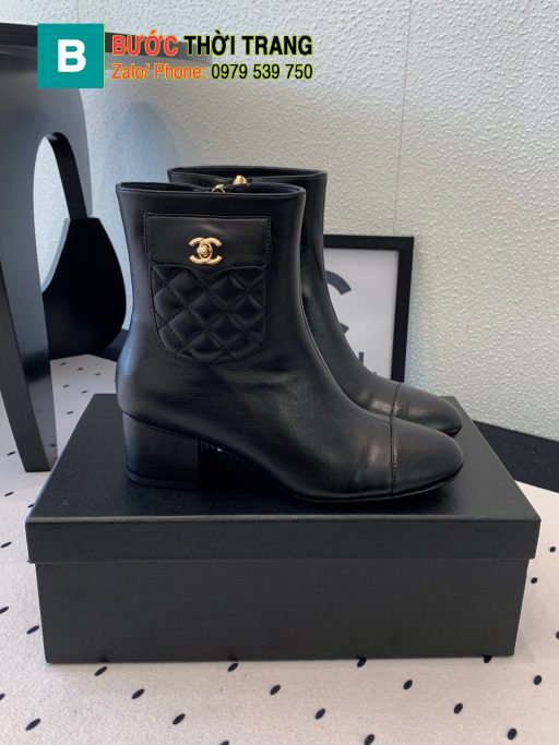 Bốt cao cổ Chanel màu đen đế cao 5 cm sang trọng