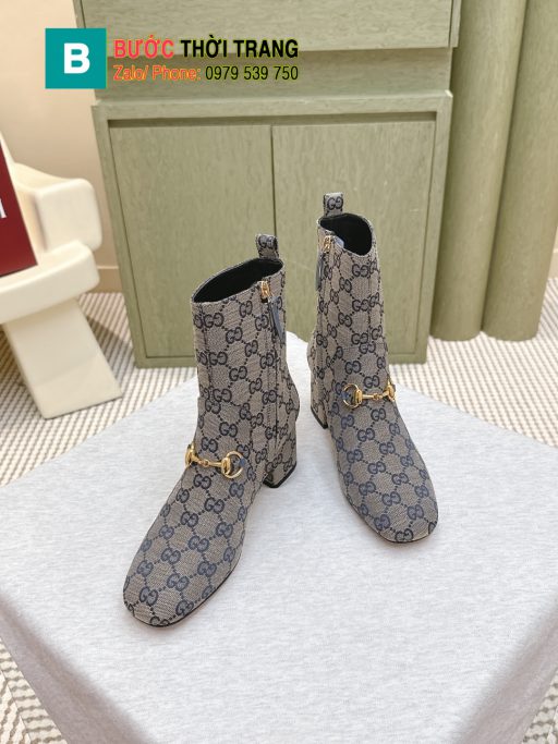 Bốt cao cổ Gucci màu đen canvas mũi tròn cực đẹp