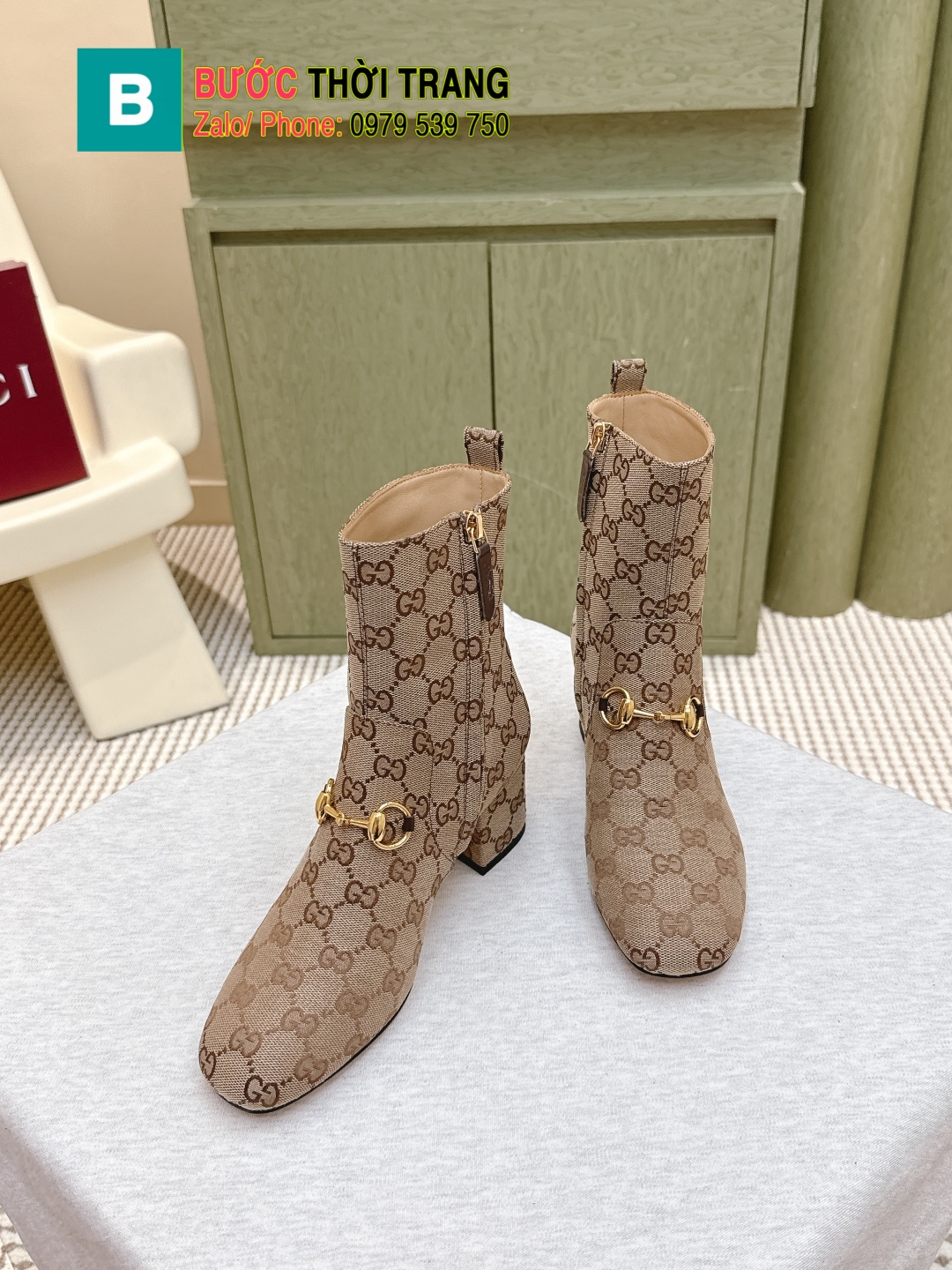 Bốt cao cổ Gucci màu nâu canvas mũi tròn cực đẹp