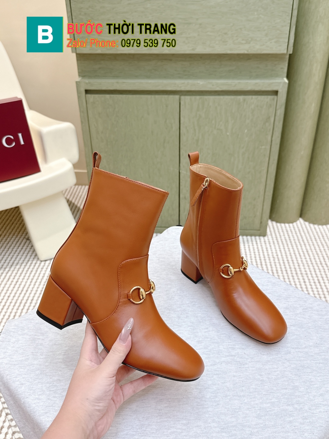 Bốt cao cổ Gucci màu nâu da bò mũi tròn cực đẹp