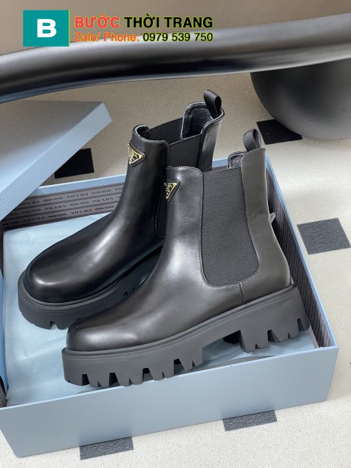 Bốt cao cổ PRADA màu đen siêu cấp, đế cao 5 cm phong cách