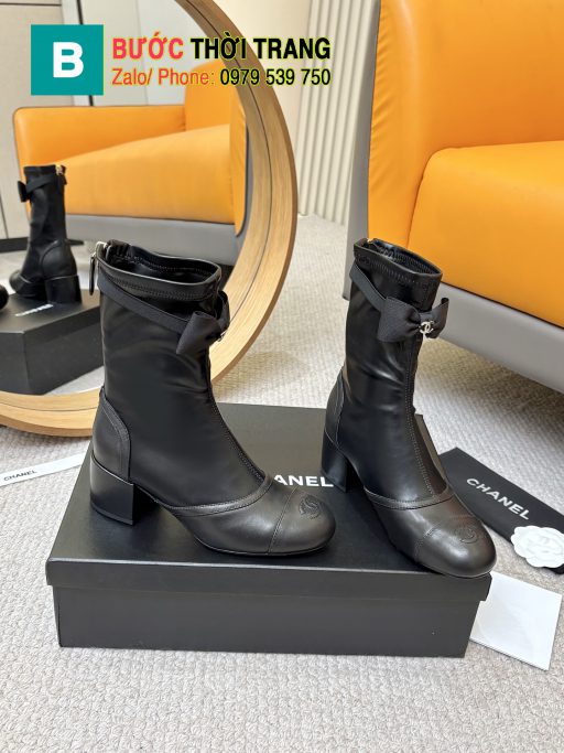 Bốt Chanel cao cổ, chất da bò mềm mịn có khóa kéo thuận tiện