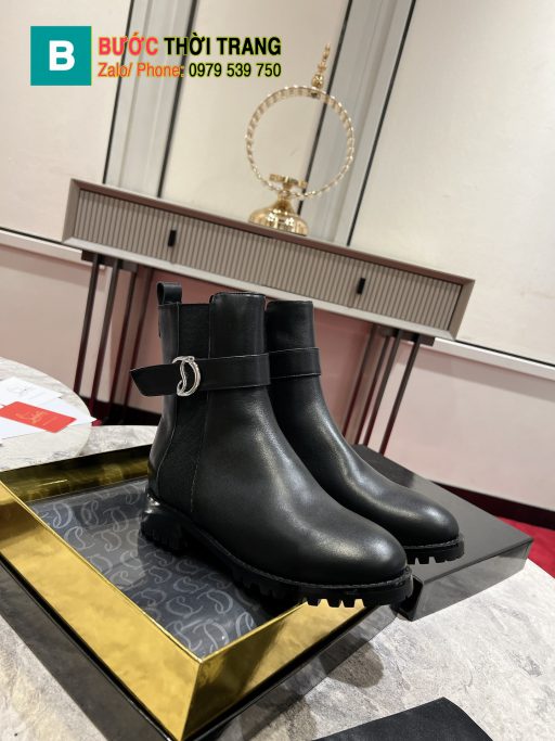 Bốt Christian Louboutin màu đen da bò mềm mịn mũi tròn sang trọng