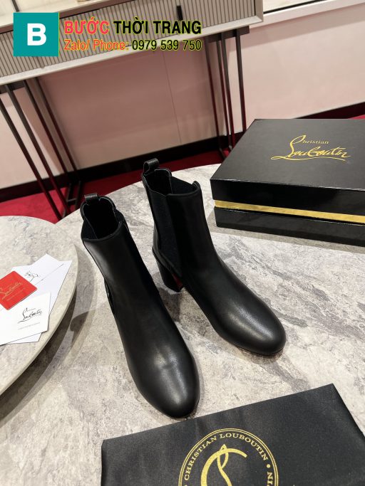 Bốt Christian Louboutin màu đen da bò mềm mịn mũi tròn sang trọng