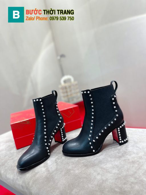 Bốt Christian Louboutin màu đen da bò mềm mịn mũi tròn sang trọng
