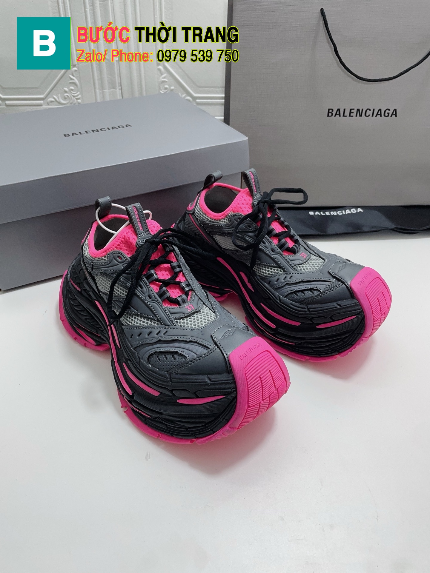 Giày cao gót Balenciaga Paris Family/Adidas 10cm/4.5cm màu hồng đậm