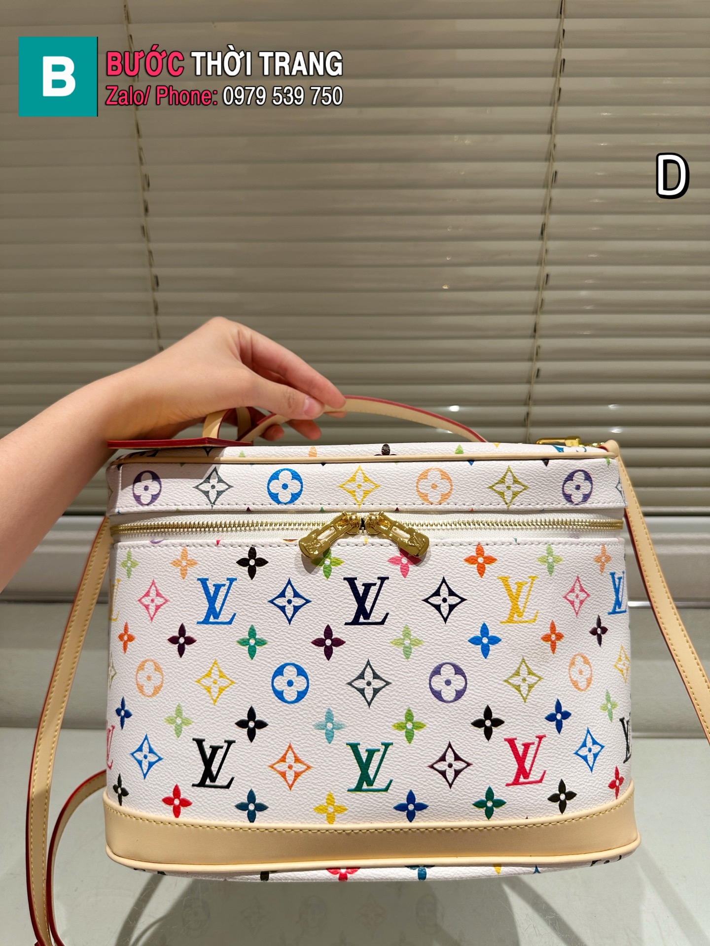 Túi xách Lv caryall màu trắng ngà logo chữ hồng cực đẹp size 20 cm