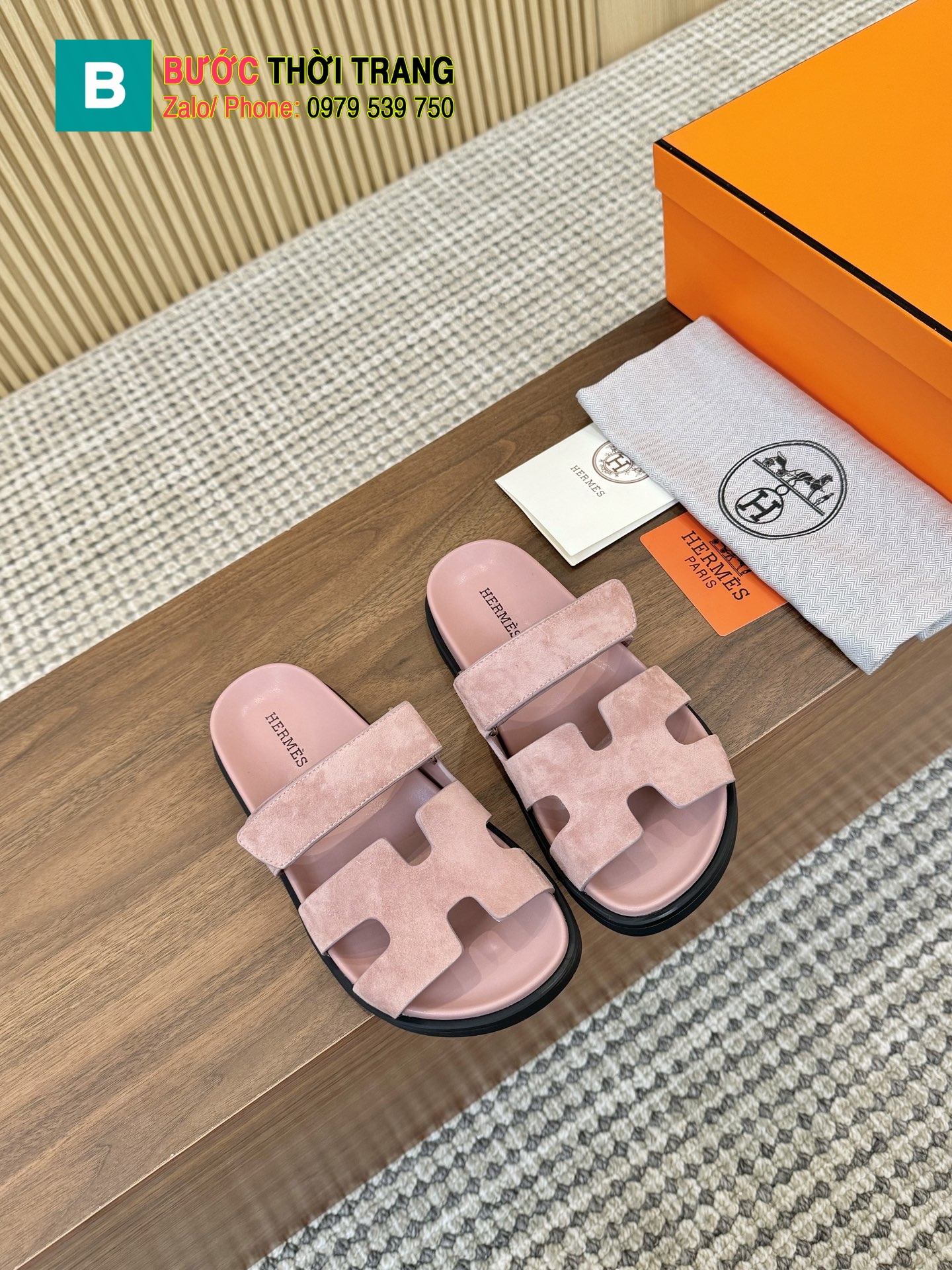 Dép bệt Hermes màu hồng phấn, 2 quai phong cách năng động