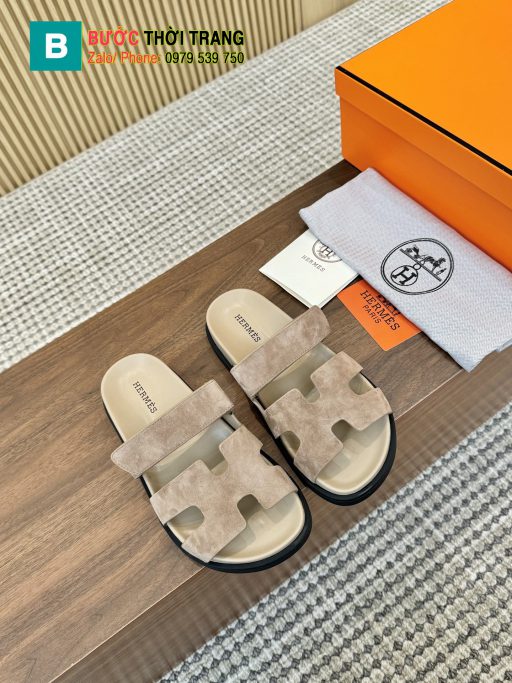 Dép bệt Hermes màu nâu be, 2 quai phong cách năng động