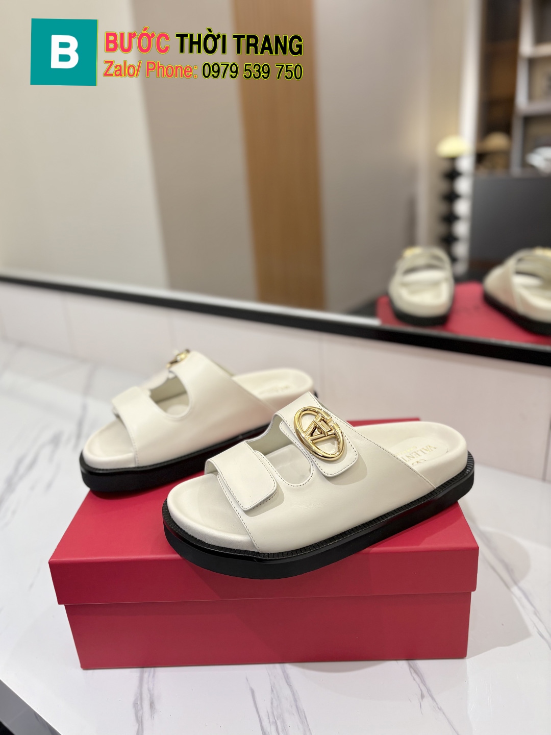 Dép bệt Valentino màu trắng chất da mềm đanh, logo sáng bóng rất đẹp