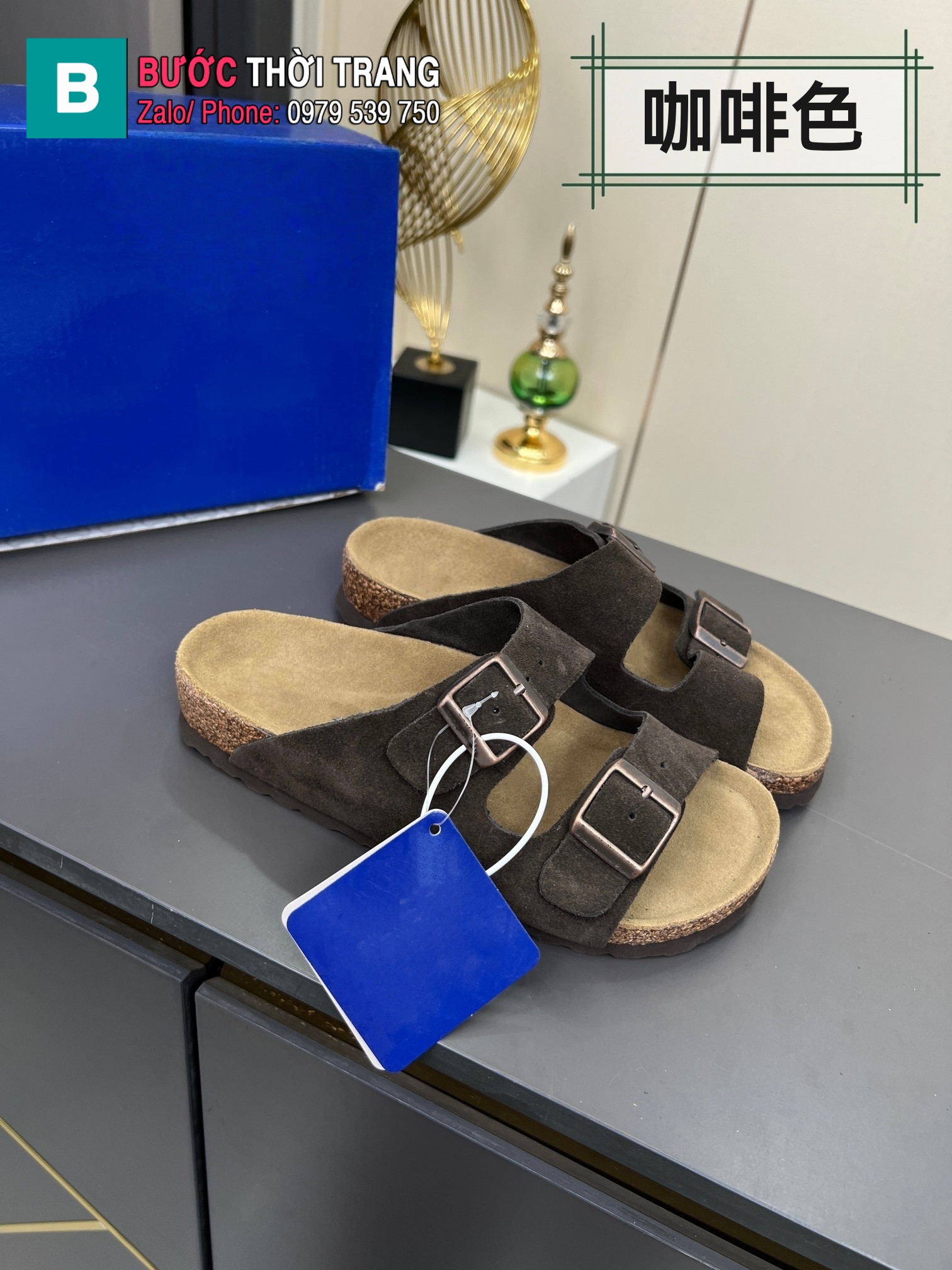 Dép Birkenstock màu nâu socola da lộn phong cách tối giản thanh lịch
