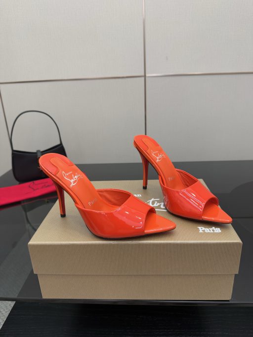 Dép cao gót Christian Louboutin màu cam da bóng cao cấp mũi nhọn cao 10cm