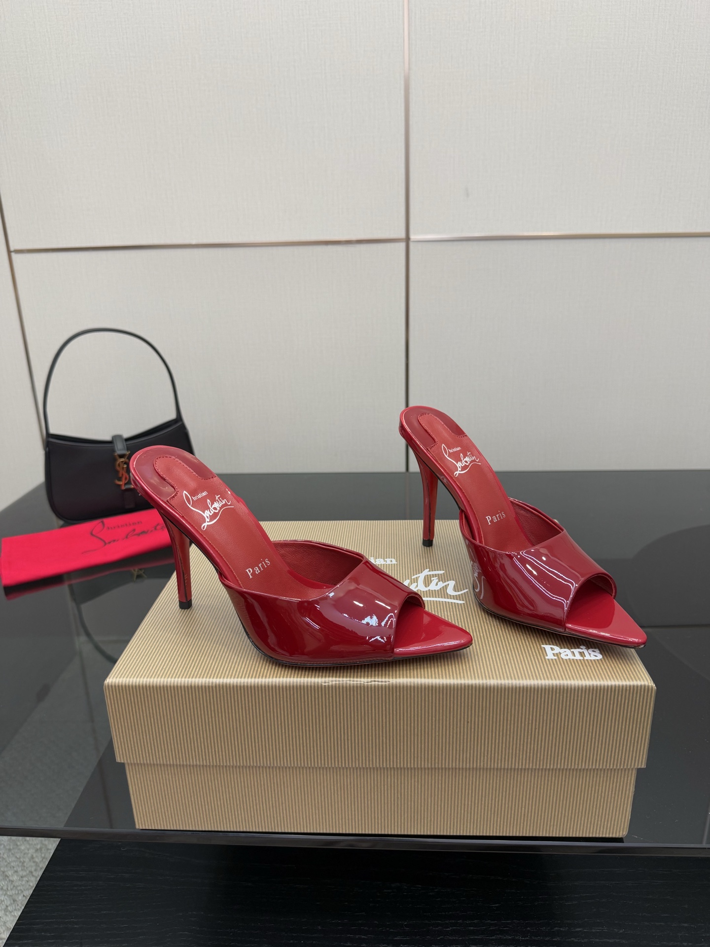 Dép cao gót Christian Louboutin màu đỏ da bóng mũi nhọn cao cấp