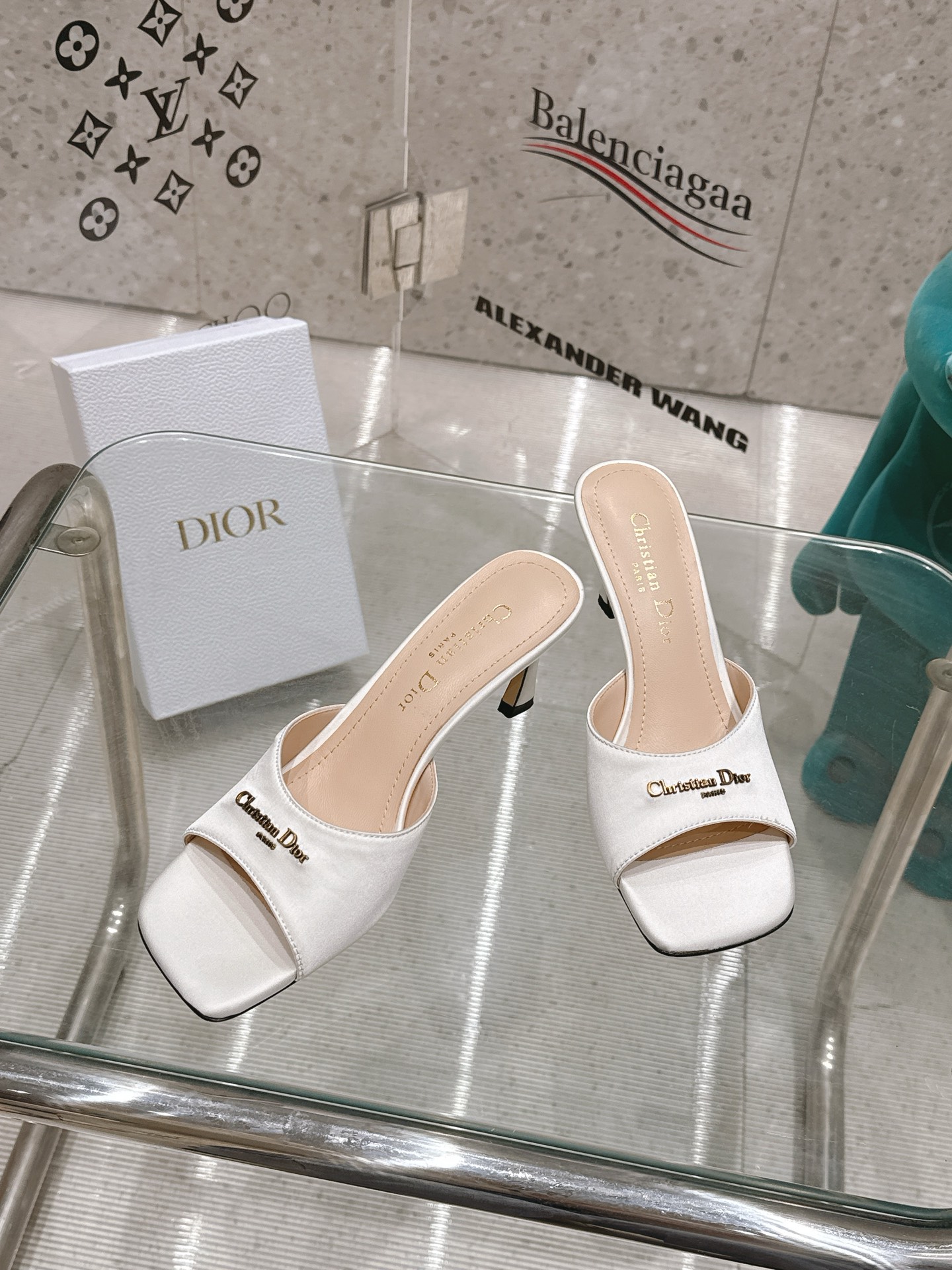 Dép cao gót DIOR màu trắng kiểu dáng thanh lịch tôn dáng dễ phối đồ