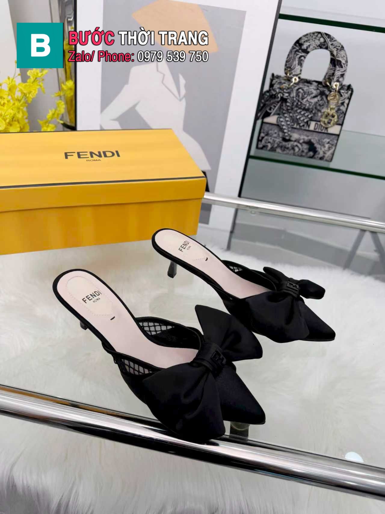 Dép cao gót FENDI đính nơ bản to nữ tính
