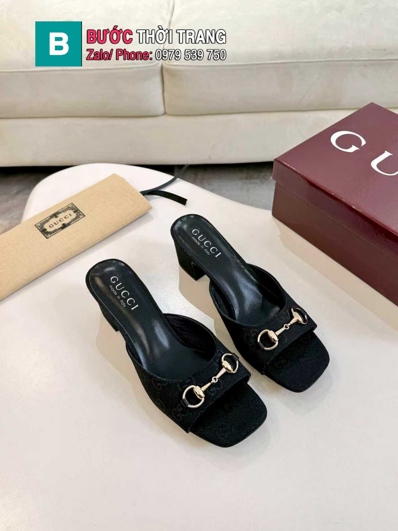 Dép cao gót GUCCI màu đen canvas thiết kế sang trọng quý phái