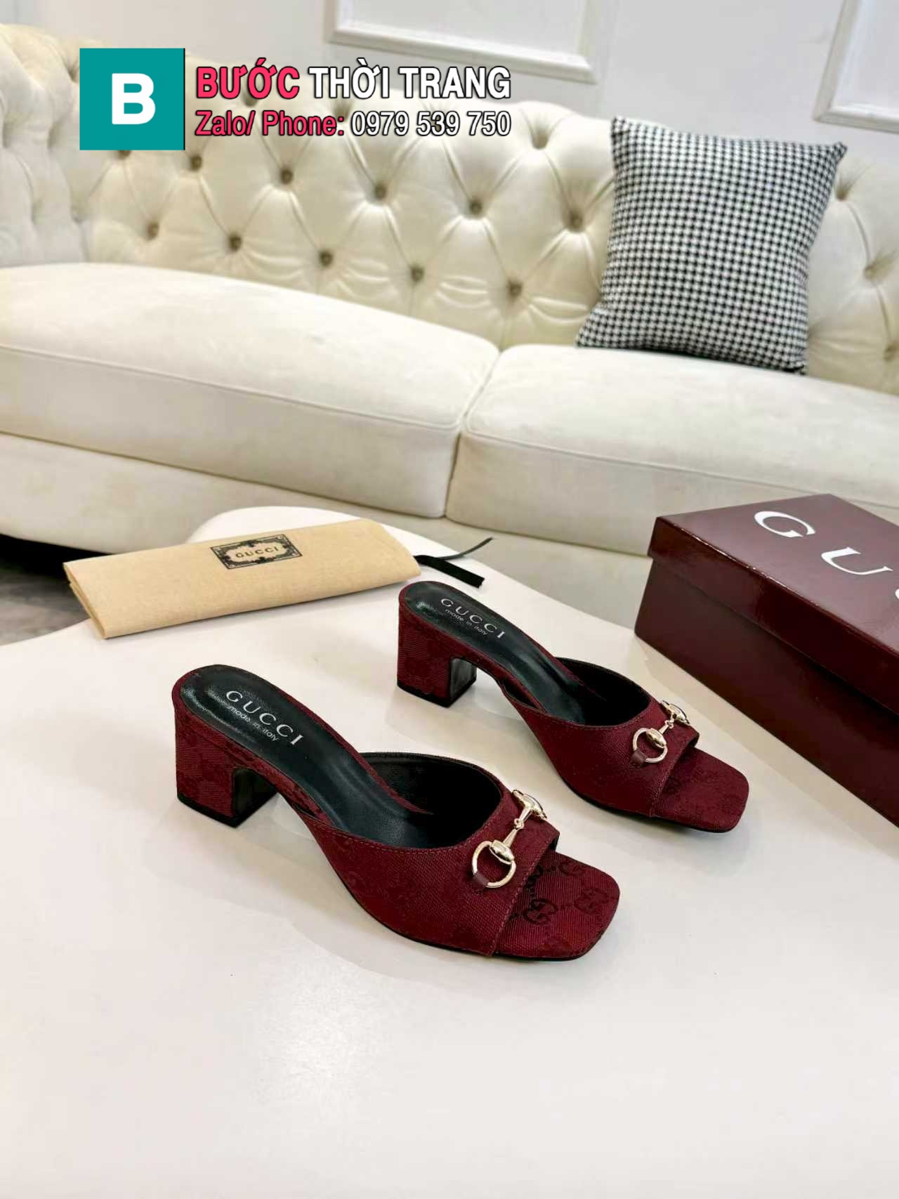 Dép cao gót GUCCI màu đỏ đô canvas thiết kế sang trọng quý phái