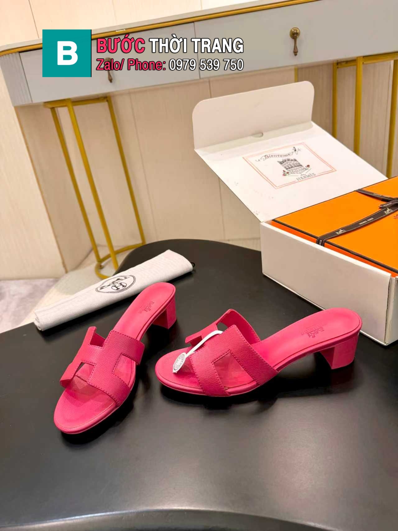 🌟 Dép Hermes sandal gót trung Oran thuộc bộ sưu tập của Hermès – biểu tượng thanh lịch vượt thời gian.