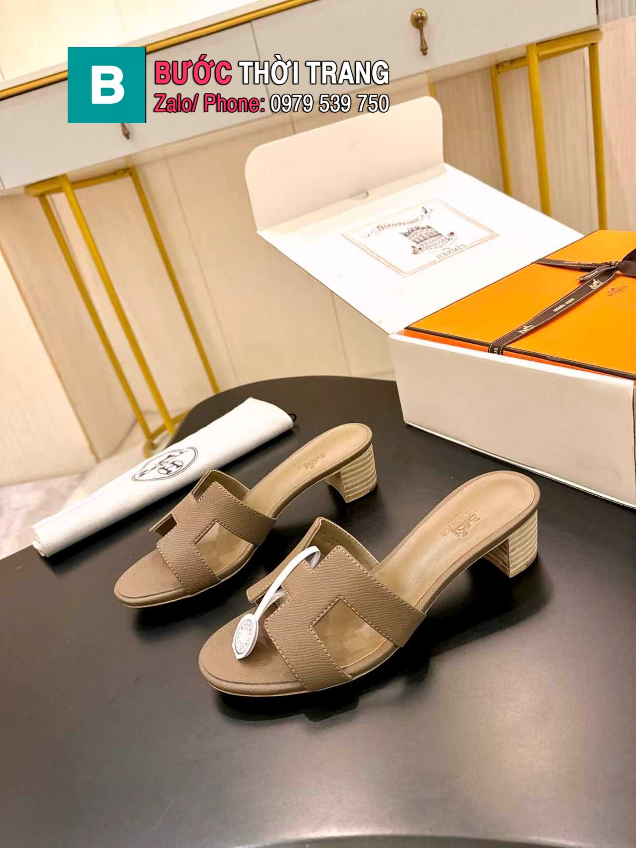 🌟 Dép Hermes sandal gót trung Oran thuộc bộ sưu tập của Hermès – biểu tượng thanh lịch vượt thời gian.