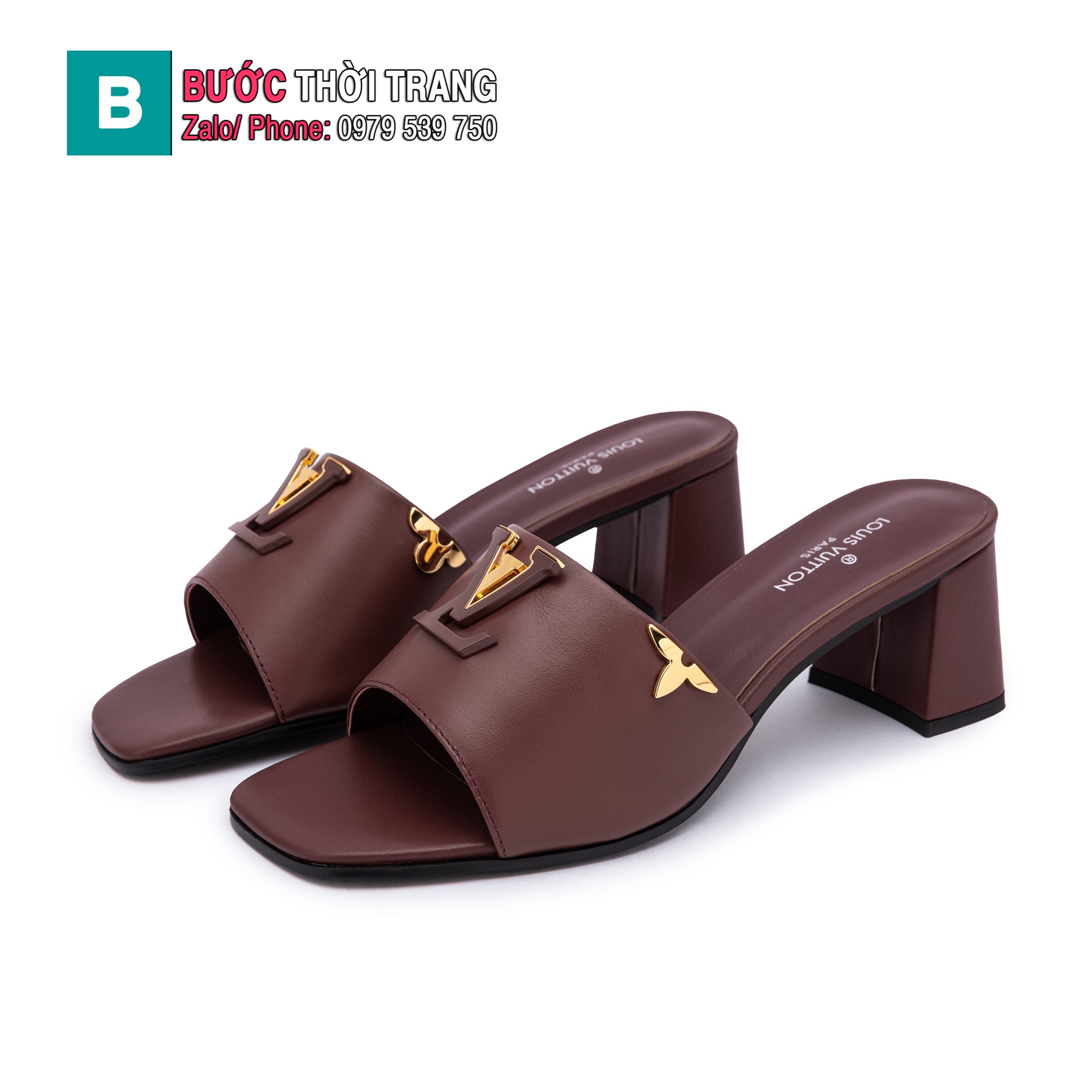 Dép cao gót LV màu nâu socola đế vuông phong cách sang trọng