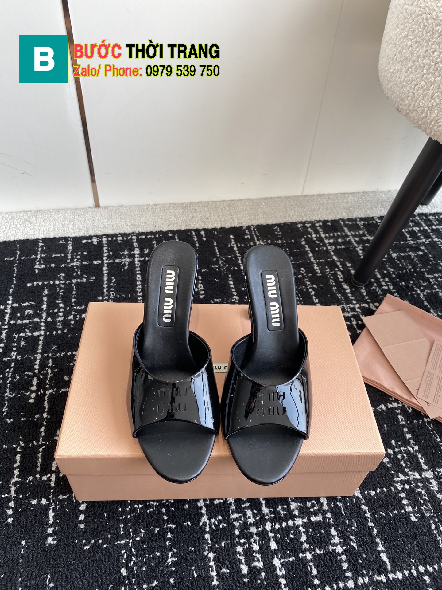 Dép cao gót MIU MIU màu đen cao cấp da bóng mượt gót nhỏ tôn dáng đế cao 5cm & 10cm