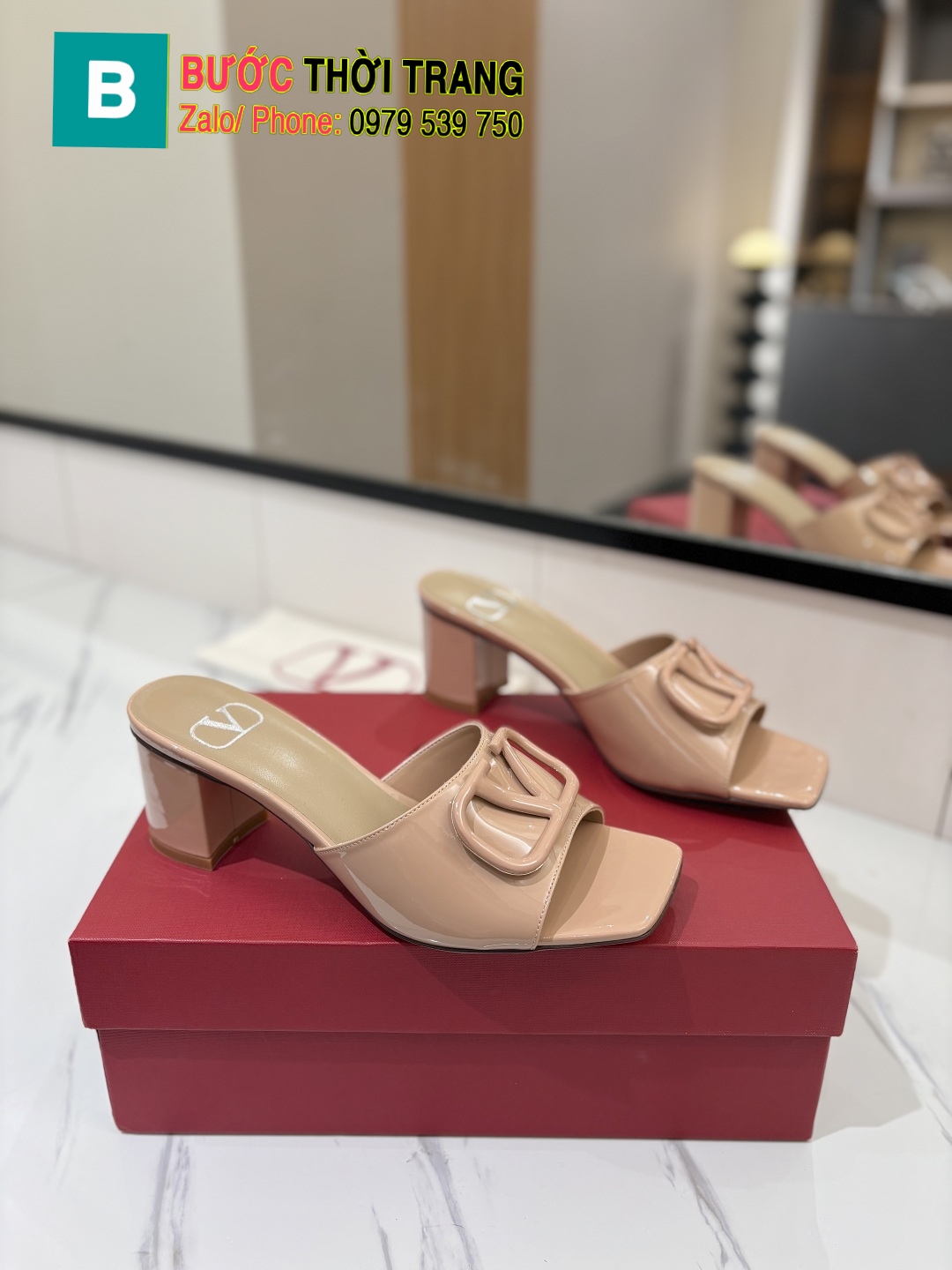 Dép cao gót Valentino màu be chất da mềm đanh, dép cao 6cm