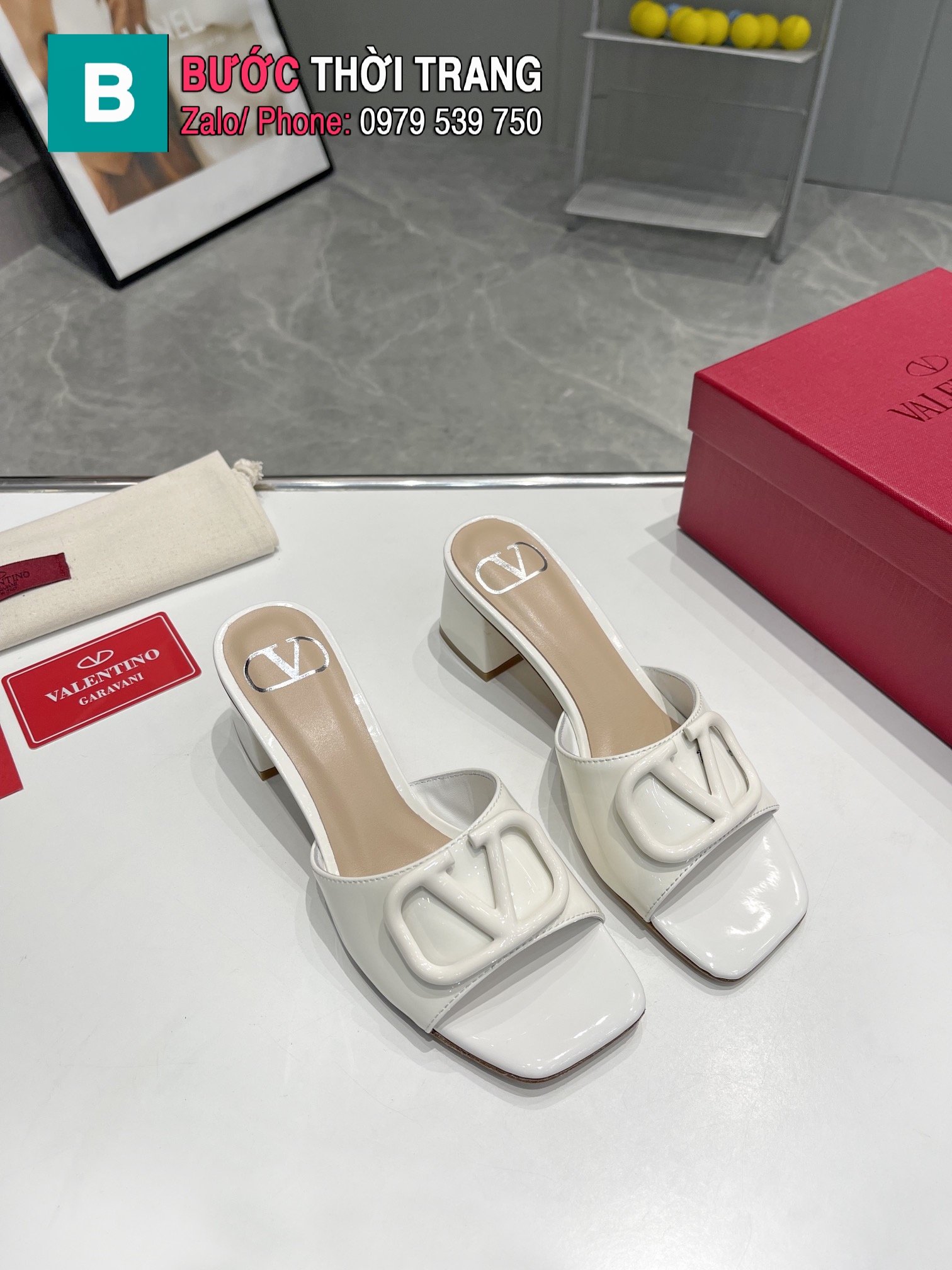 Dép cao gót VALENTINO màu trắng đế vuông chắc chắn cao 6cm logo nổi bật