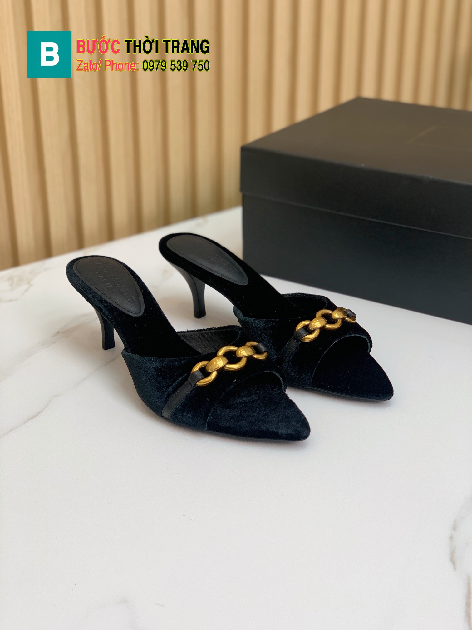 Dép cao gót YSL màu đen sang trọng chất liệu nhung mềm êm chân gót cao 4cm Hàng order 10-15 ngày (Cọc trước 500K)