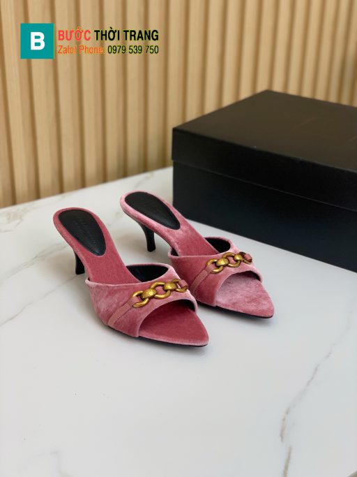 Dép cao gót YSL màu hồng trầm sang trọng chất liệu nhung mềm êm chân gót cao 4cm Hàng order 10-15 ngày (Cọc trước 500K)