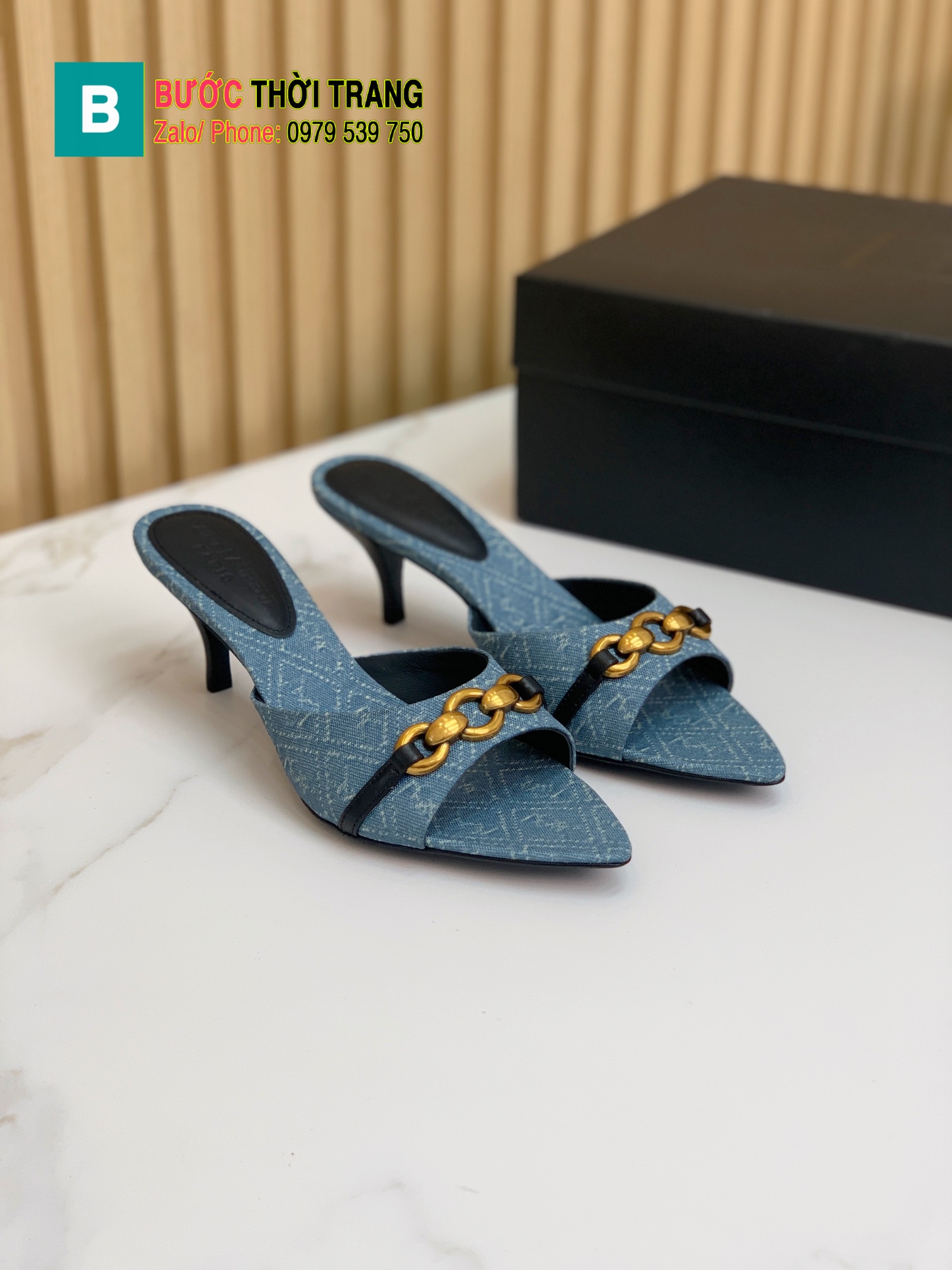 Dép cao gót YSL màu xanh nhạt sang trọng chất liệu vải denim gót cao 4cm Hàng order 10-15 ngày (Cọc trước 500K)