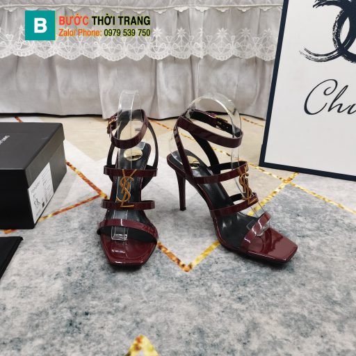 Dép cao gót Ysl siêu cấp màu đỏ đô trầm da bóng logo vàng sáng rất đẹp Hàng order 10-15 ngày (Cọc trước 500K)