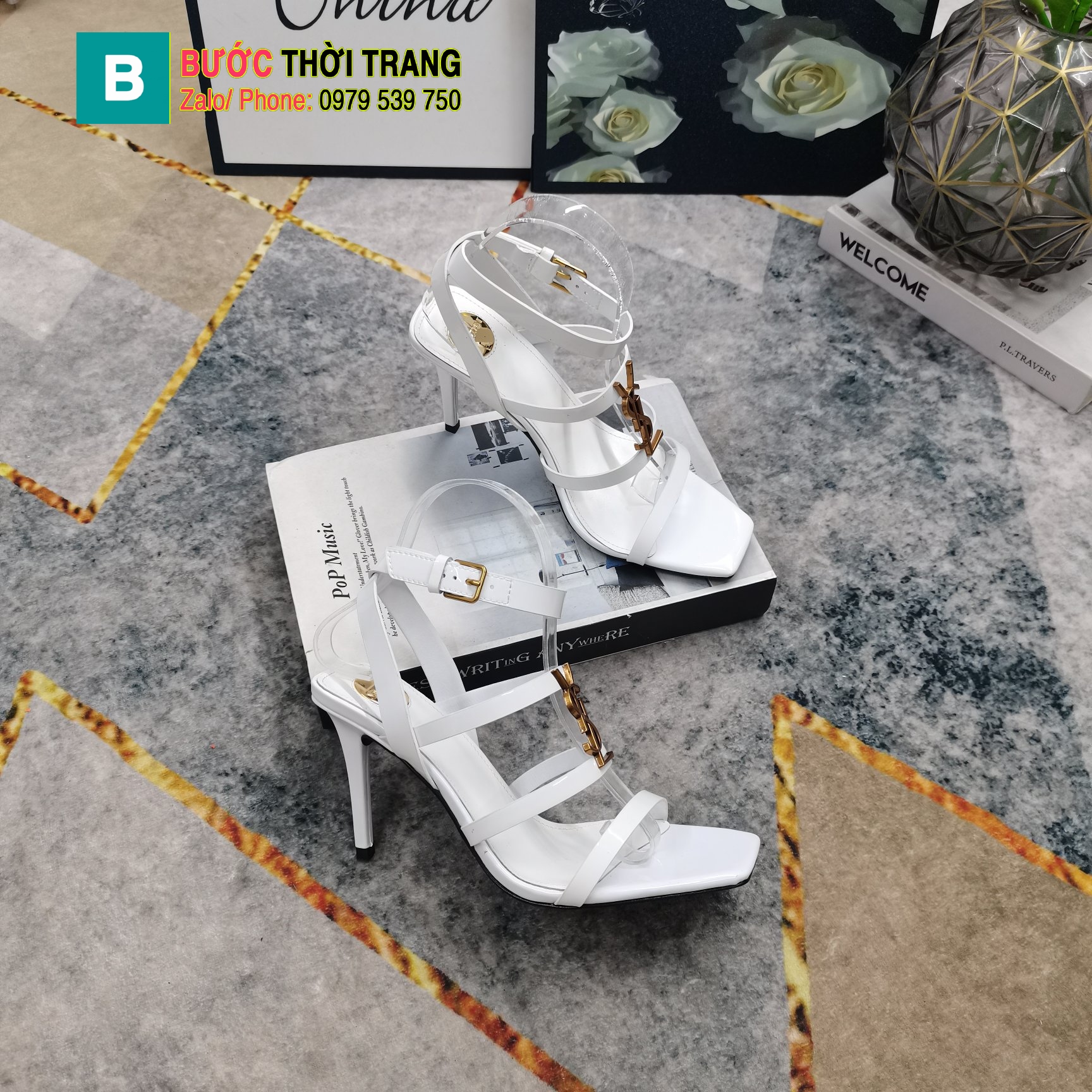 Dép cao gót Ysl siêu cấp màu trắng trầm da bóng logo vàng sáng rất đẹp Hàng order 10-15 ngày (Cọc trước 500K)