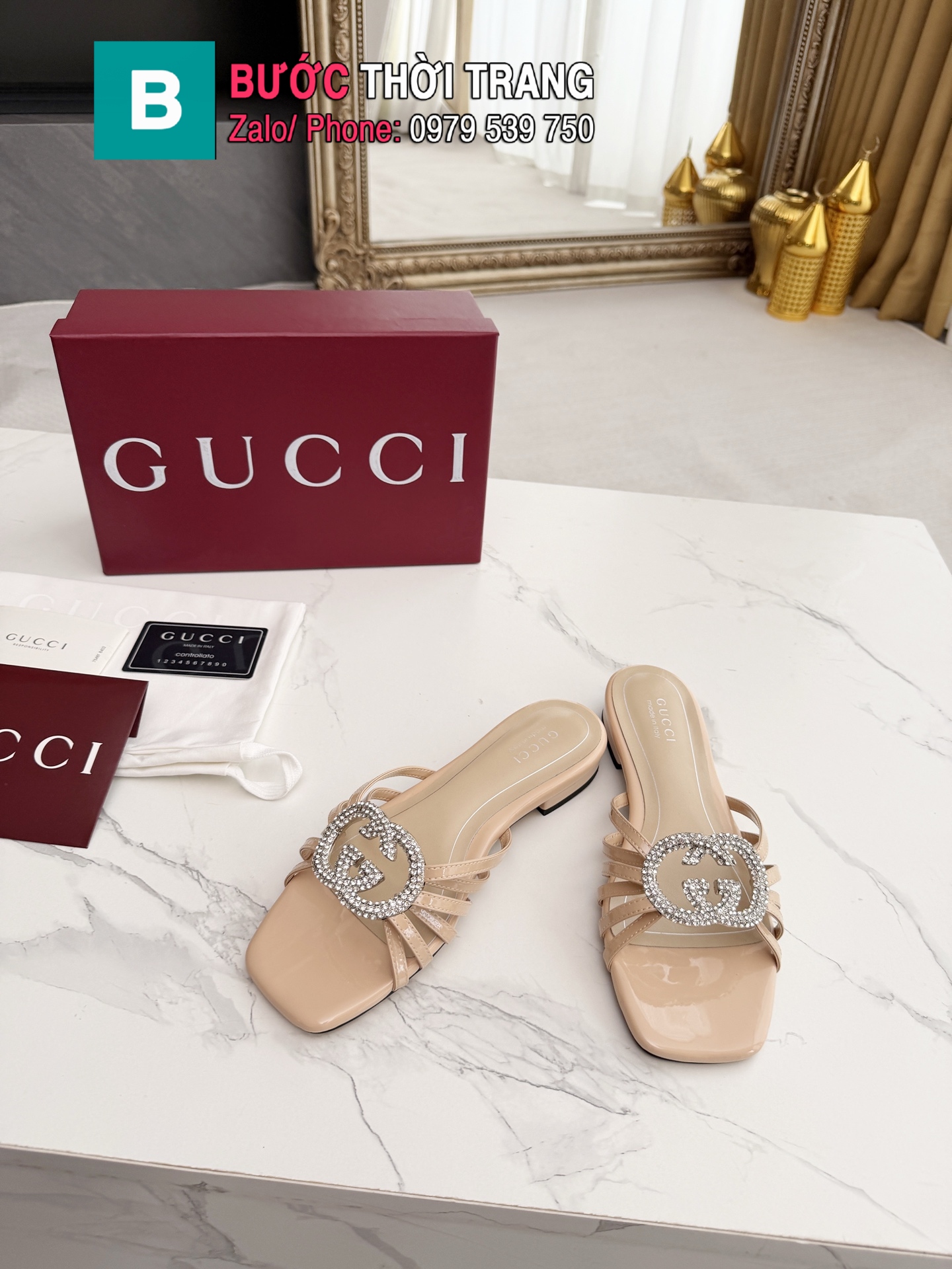 Dép GUCCI nữ đế bệt màu nude đính ngọc lấp lánh