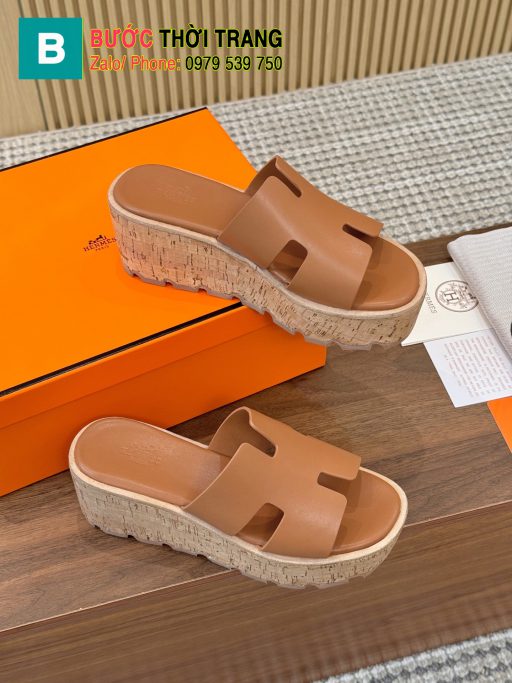 Sandal nữ Hermes Elda Grass -ed đế xuồng cao 8cm màu nâu nhạt