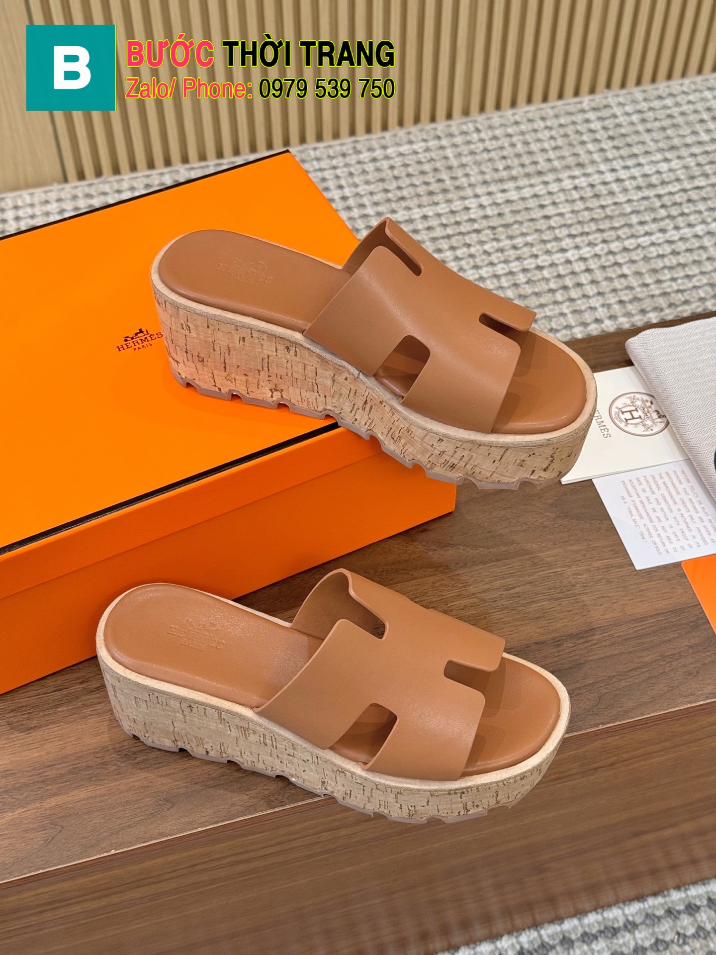 Dép Hermes màu nâu đế xuồng chất da mềm đanh rất đẹp