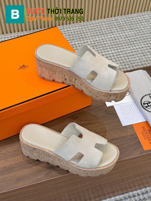 Sandal nữ Hermes Elda Grass -ed đế xuồng cao 8cm nỉ màu beige