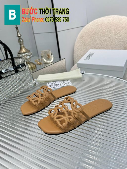 Dép LOEWE màu nâu đế bệt chất liệu da bò mềm đanh bền bỉ phong cách nhã nhặn dễ phối đồ