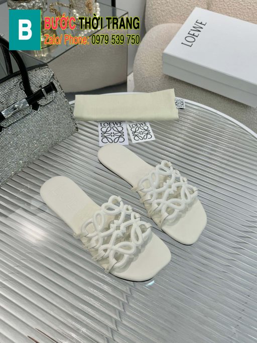Dép LOEWE màu trắng đế bệt chất liệu da bò mềm đanh bền bỉ phong cách nhã nhặn dễ phối đồ