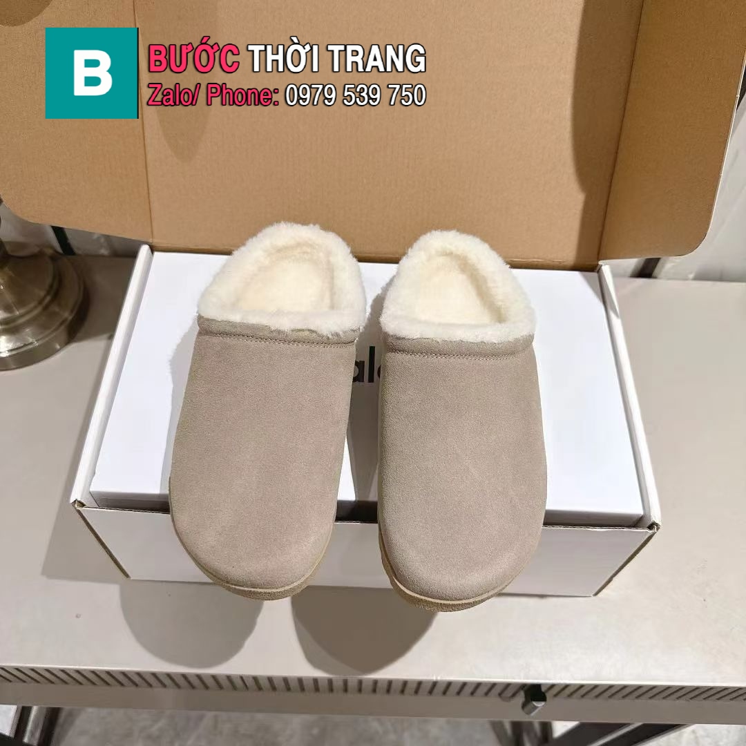 Dép lông cừu ALO màu be ghi mềm êm ấm áp đế cao su bền bỉ