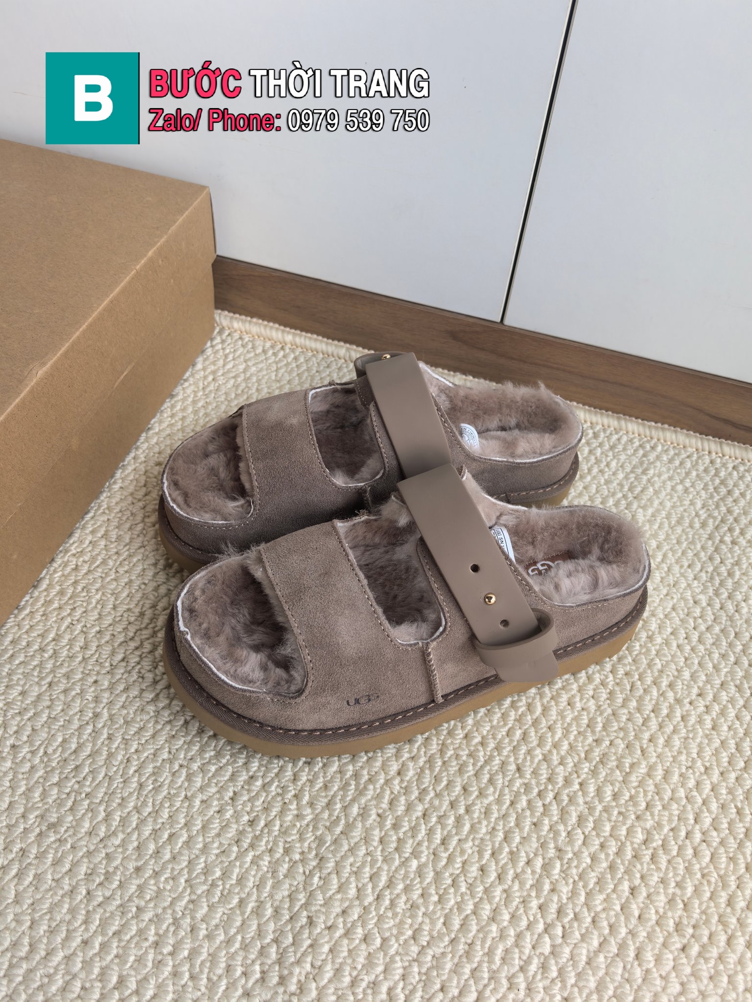 Dép lông UGG màu ghi lót lông ấm áp đế cao su đàn hồi bền bỉ