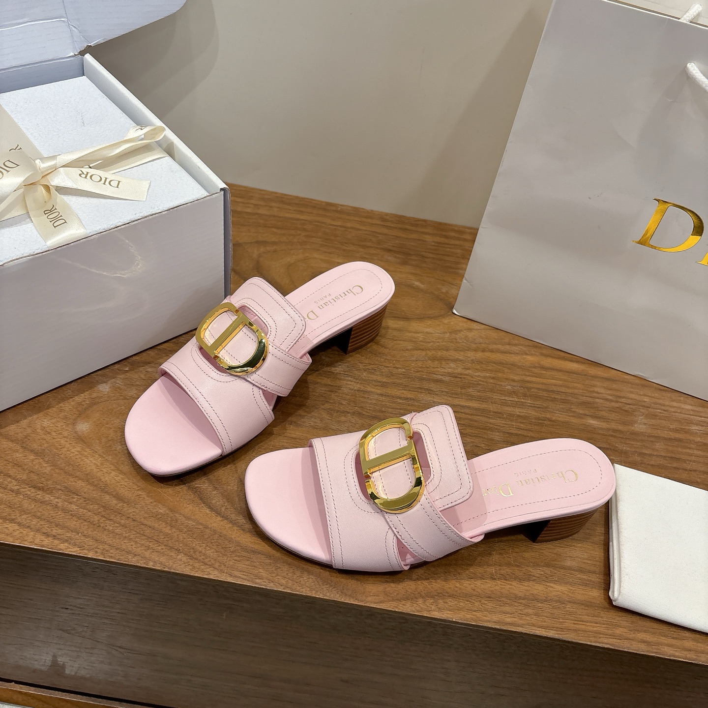 Dép nữ Dior màu hồng nhạt chất liệu da bò cao cấp đế cao 4,5cm