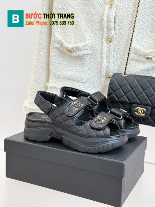 Dép Sandal Chanel màu đen siêu cấp đế cao phong cách năng động
