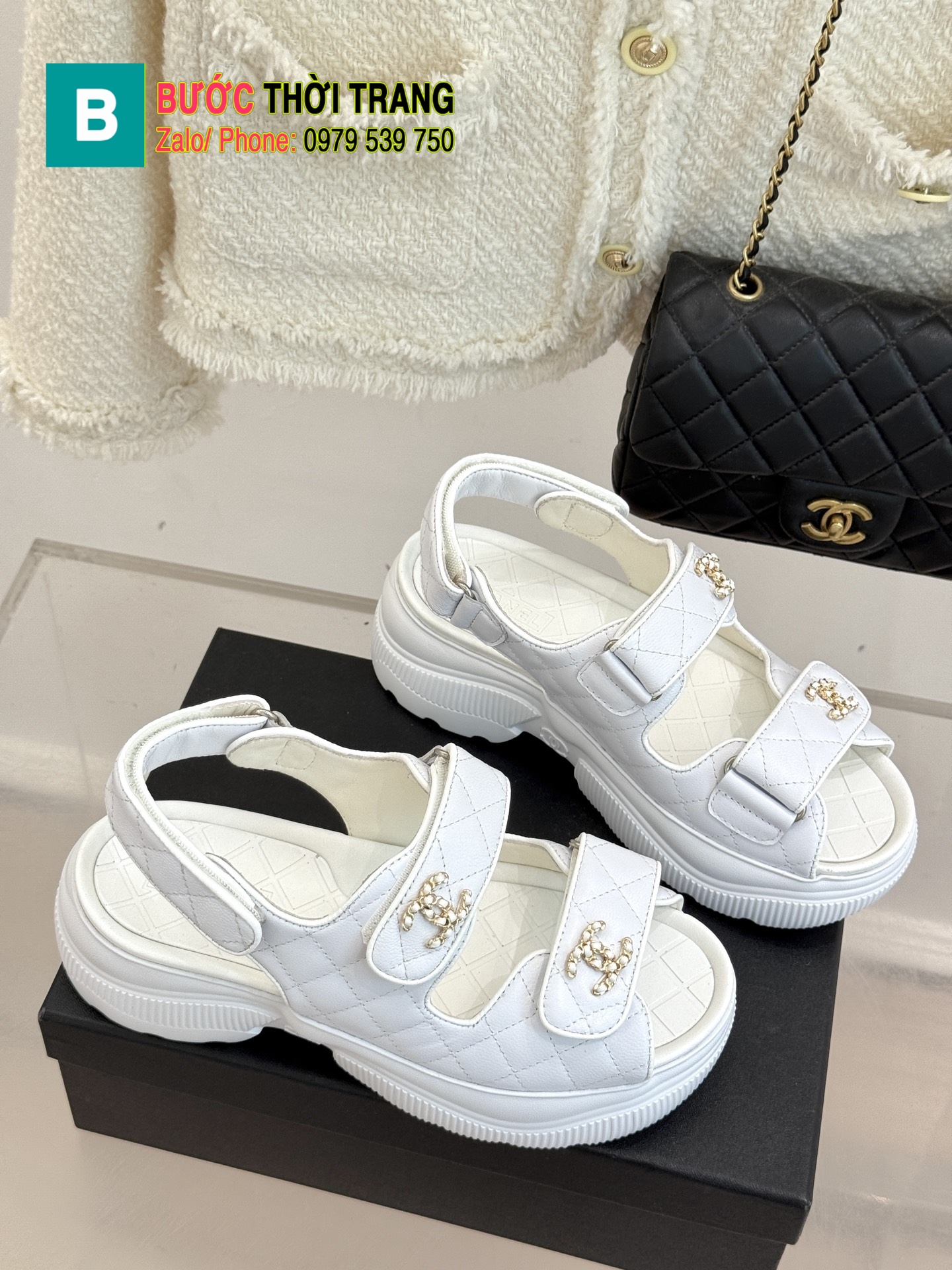 Dép Sandal Chanel màu trắng siêu cấp đế cao phong cách năng động