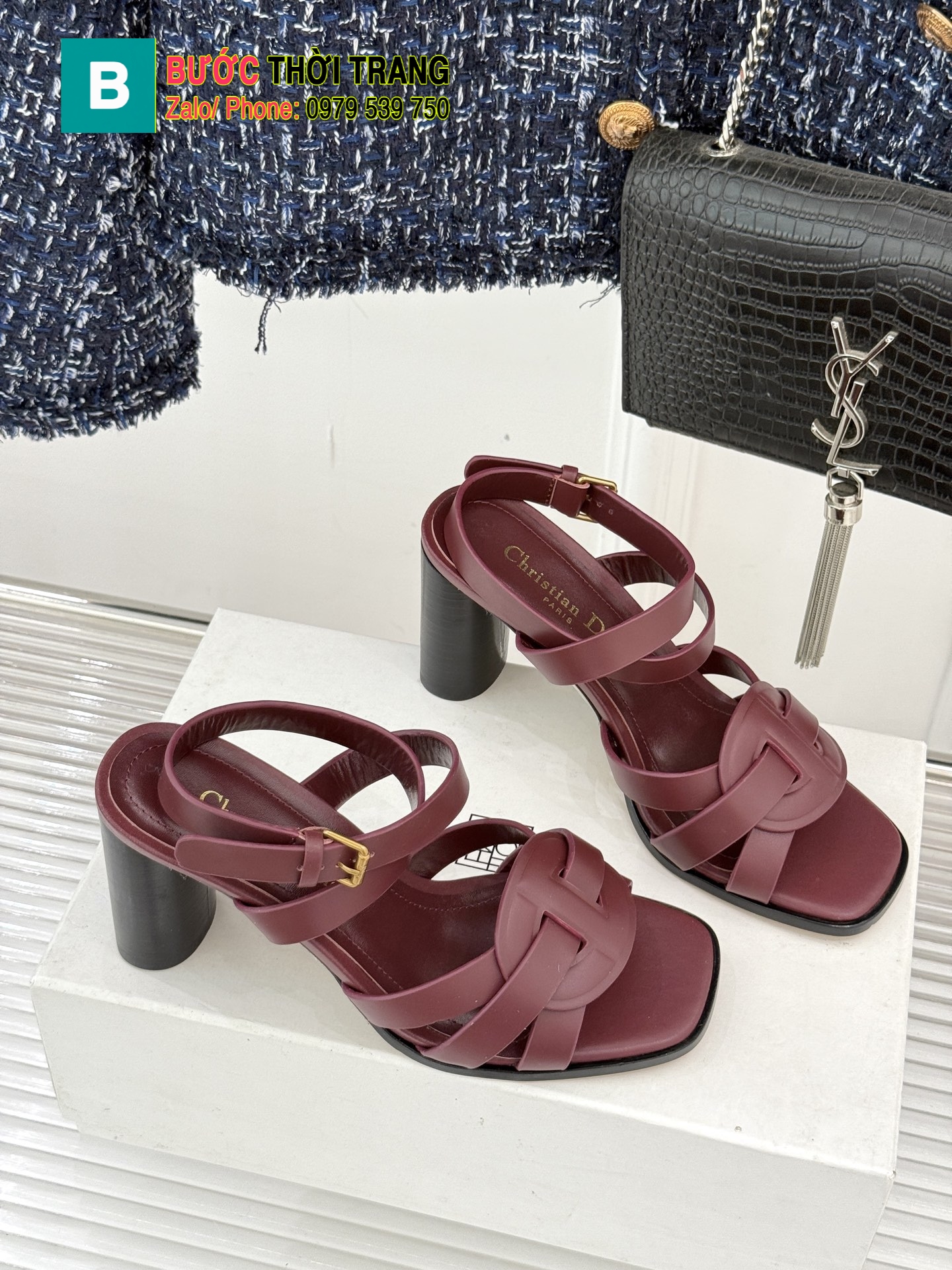 Dép xăng đan Dior cao gót màu đỏ mận chất da bò mềm đanh cực đẹp, đế cao 8 cm